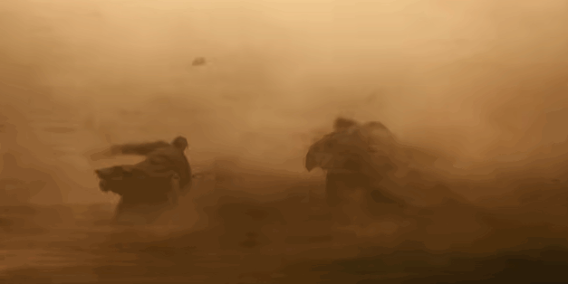 几乎每一帧都能看到经费在燃烧,无论是大漠孤烟直的荒凉寂静感,还是各种角度的运镜与剪切,仿佛都将“工业片最高水准”刻在画面之中。