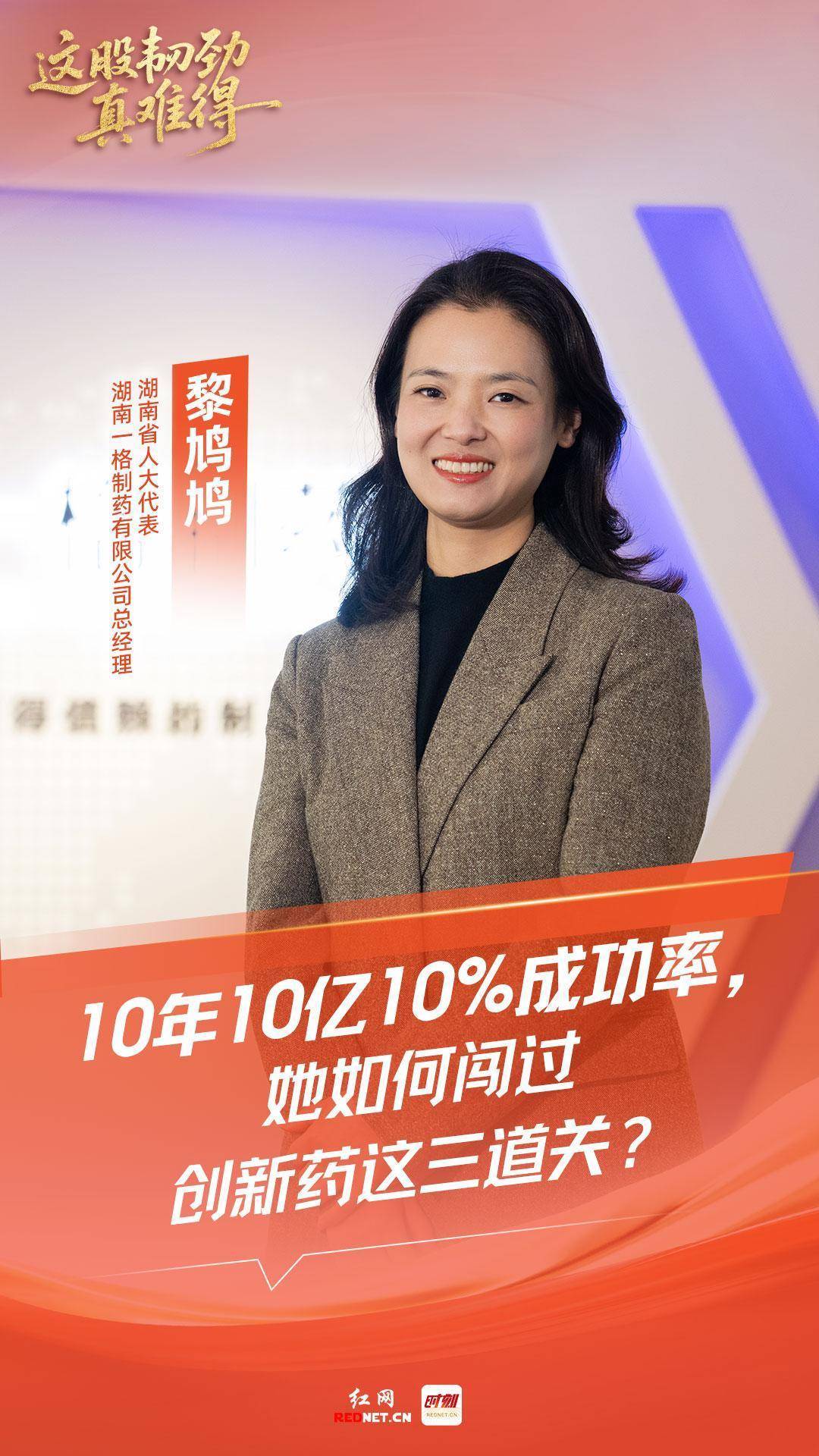 编者按:在时代的风浪里,有这样一批民营企业家——他们面对市场起伏与转型挑战,那份近乎执拗的坚持、百折不回的韧性,正是奋斗者最动人的精神底色。湖南省两会召开之际,红网时刻新闻推出《这股韧劲真难得》系列报道,将镜头对准代表委员中的民营企业家。他们用行动书写一个“韧”字:是创新时的沉心钻研,是承压时的默默扎根,更是机遇来临时的勇敢一跃。这份力量,来自信念,成于实干。红网时刻新闻记者 刘玉先 摄影 张必闻 长沙、湘潭报道10年、10个亿、10%的成功率——这是横亘在每一家制药企业创新之路上的“三个10”。意思是,研发一款创新药,平均耗时10年,耗资10亿,而成功率仅为10%。如此高风险、长周期的“马拉松”,让不少体量有限、资源不足、意志不坚的企业望而却步。但在湖南湘潭,有一家药企却选择逆流而上。“风险确实很大,很可能多年心血付诸东流。”1月24日,在位于长沙麓谷的湖南一格制药药物研究院,湖南省人大代表、湖南一格制药有限公司总经理黎鸠鸠向红网记者坦言。当天,她专程从湘潭总部赶来,了解由刘卫国博士领衔的药物研究院在创新药研发上的进展与困难。“经过一年多的攻关,两个创新药已取得阶段性成果。”研究院院长刘卫国介绍。2022年,以仿制药起家的一格制药作出重大战略转型:投入数千万元租赁场地、购置设备,并高薪聘请刘卫国博士担任药物研究院院长,开启自主研发的“长征路”。“湖南并非医药创新的优势区域,一格制药又地处湘潭,体量不大,还面临人才、资源等多重制约。”谈起这些不利条件,“企二代”黎鸠鸠没有抱怨,反而更显清醒与坚定。在同行眼中,一格制药自建研发团队、设立药物研究院曾被视为“异想天开”。毕竟,大多数同类企业或将研发中心设在一线城市,或直接外包。但黎鸠鸠不以为然。“这一看似‘不切实际’的投入,恰恰是我们韧劲最真实的体现。”她说。其实,选择自主研发创新药,黎鸠鸠跨越了重重难关。